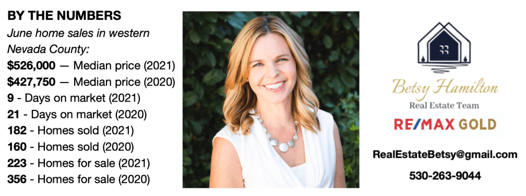 Although June’s home sales statewide saw a 2.2% decline from the prior month, western Nevada County totaled 182 homes sold, the highest single month of sales in 2021 and the most since 201 units sold in August 2020.